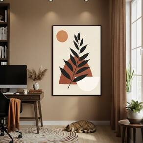 Quadro Decorativo Arte Marrom Planta 70x50cm Mold Branca