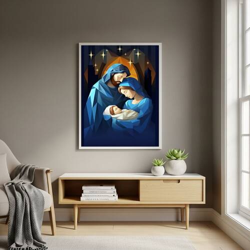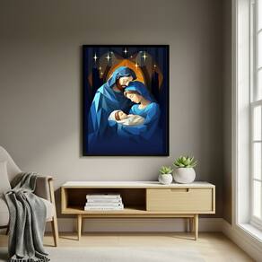 Quadro Decorativo Arte Moderna da Sagrada Família - 70x50cm - Cor: Moldura Branca