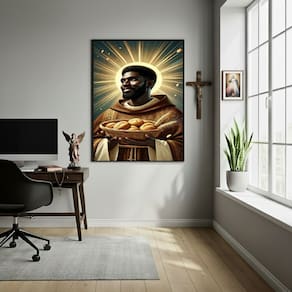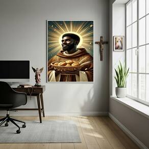 Quadro Decorativo Arte Sacra São Benedito - 70x50cm - Cor: Moldura Preta