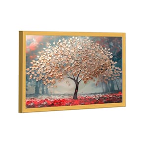 Quadro Decorativo Árvore Dourada com Lindas Folhas Moldura Dourada e Vidro - 180x105cm -