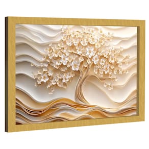Quadro Decorativo Árvore Majestosa Estilo 3D Variação Moldura Dourada - 60x40cm -