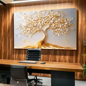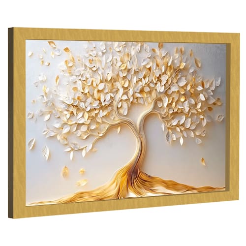 Quadro Decorativo Árvore Majestosa Estilo 3D Moldura Dourada - 118x78cm -