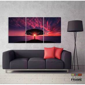 Quadro Decorativo Arvore Por do Sol 3 peças 120x60 sala