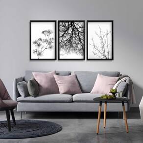 Quadro Decorativo Árvores Preto Branco Minimalista Moldura Preta 60x40 Uma parede bem decorada dá vida ao ambiente. Dê adeus para as paredes vazias e monótonas Os quadros decorativos da Império dos Quadros são grandes aliados quando o assunto é decoração. Quadro Decorativo Árvores Preto Branco Minimalista Moldura Preta 60x40 é impresso em equipamento de alta resolução Full HD , em vinil fosco e aplicado em MDF de 3MM com moldura, na opção sem moldura o quadro é fabricado com MDF de 6MM. Os quadros têm o poder de valorizar os mais diversos ambientes e refletir com estilo a personalidade dos moradores. nossos Quadros decorativos possuem moldura de madeira de reflorestamento com 2cm de largura e 2cm de profundidade com acabamento de matéria prima importada especial com impregnação, com espessura de 0,35 mm. Alta resistência ao impacto e risco; Alta solidez a luz; Molduras de madeira de reflorestamento com certificado; Resistência ao amarelamento, abrasão e manchas; Dicas de uso: 1 - A primeira dica é escolher os quadros e estabelecer uma relação entre eles e a decoração. O motivo, a cor ou a moldura devem estar harmoniosamente relacionados à decoração e ao restante do ambiente. 2 - A regra básica para pendurar quadros é mantê-las no nível dos olhos do observador. Pendurar os quadros muito alto não será uma boa opção. Além disso, os quadros devem ter um certo relacionamento entre si. 3 - É fundamental prestar atenção no mobiliário do espaço. Se você for colocar o quadro na sala, eles devem ficar pelo menos 25cm acima do sofá. O mesmo vale para os quartos, em relação à cama, aparadores, mesas de jantar, etc. No caso de escadas, os quadros devem acompanhar sua inclinação. 4 - Não existe cômodo certo, o quadro pode ser Utilizado em todos os ambientes: salas, quartos, banheiros e até o cantinho embaixo da escada. Os corredores são uma ótima ideia, como normalmente eles não contam com móveis, os quadros são uma excelente opção para imprimir personalidade sem atrapalhar a circulação. 5 - Nem sempre é necessário perfurar a parede, a fita dupla face pode e deve ser Utilizado, pois ela evita os furos na parede O material só não pode ser utilizado em quadros com molduras muito pesadas ou que tenham vidro, já que a queda nesses casos pode gerar acidentes. Outra opção é apoiar os quadros em móveis ou no piso, criando uma decoração moderna e sofisticada. 6 - Não use produtos químicos, álcool. Apenas água na limpeza. Utilize um pano macio úmido para remover a poeira. 7 - Use uma arandela sobre um quadro dá um efeito interessante. Dados técnicos: 3x Peças do tamanho selecionado; Espaçamento entre as peças: 1 cm; Dimensão da Moldura: 2cm largura x 2cm profundidade.