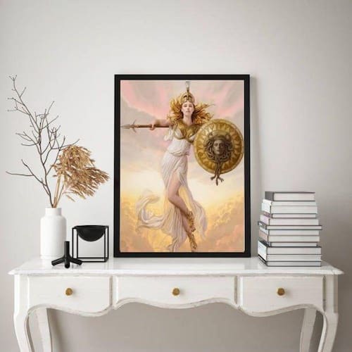 Quadro decorativo atena- deusa da sabedoria 45x34cm Moldura: madeira branca Informações do produto tire todas as suas dúvidas no descritivo abaixo: decoração para quarto, sala, cozinha, escritório, área gourmet e muito mais. Chega de paredes vazias. Medidas - cada peça tem 45x34cm a3 . Material do papel - papel fotográfico brilhante de altíssima resolução acabamento - todos os quadros são acompanhados de uma película de acetato para proteção da imagem. - os quadros são embalados de forma segura com plástico bolha com camada dupla de acordo com o tamanho dos quadros. Garantia - garantia de 3 meses. Meu quadro chegou. Como posso fixá-lo Você precisa apenas de um martelo e um prego, pois os quadros já vão acompanhados de penduradores. Esta é a forma mais indicada. Caso prefira, você pode utilizar uma fita dupla face neste caso, sugerimos de alta qualidade para evitar que descole e seu quadro caia . Como posso limpar meu quadro A limpeza é feita como um móvel comum da sua casa. Apenas um pano seco ou espanador são suficientes para tal Ean: 7894724297296