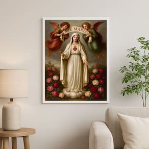 Quadro Decorativo Ave Maria Com Anjos 45x34cm - com vidro - Cor: Moldura preta