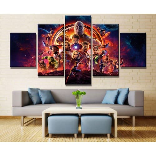 Quadro Decorativo Avengers8 5 peças 130x65 cm em tecido