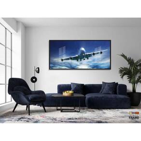 Quadro Decorativo Avião Aviação Céu 130x60 Moldura Preta 2x2