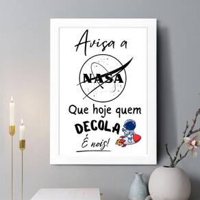 Quadro decorativo avisa a nasa 24x18cm - com vidro Cor: moldura preta Informações do produto tire todas as suas dúvidas no descritivo abaixo: decoração para quarto, sala, cozinha, escritório, área gourmet e muito mais. Chega de paredes vazias medidas - cada peça tem 24x18cm a5 . Material do papel - papel fotográfico brilhante de altíssima resolução acabamento - todos os quadros são acompanhados de vidro para proteção da imagem. - moldura em madeira maciça na cor preta ou branca conforme produto escolhido e pendurador . - os quadros são embalados de forma segura com plástico bolha com camada dupla de acordo com o tamanho dos quadros. Garantia - garantia de 3 meses. Meu quadro chegou. Como posso fixá-lo Você precisa apenas de um martelo e um prego, pois os quadros já vão acompanhados de penduradores. Esta é a forma mais indicada. Como posso limpar meu quadro A limpeza é feita como um móvel comum da sua casa. Apenas um pano seco ou espanador são suficientes para tal
