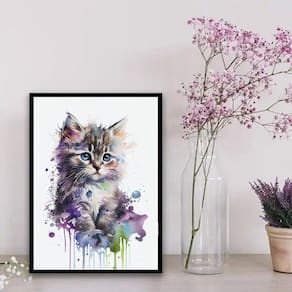 O Quadro Decorativo Baby Cat Aquarela 33X24Cm - Com Vidro é a escolha perfeita para aqueles que desejam adicionar um toque de charme e personalidade à decoração de qualquer ambiente. Com medidas de 33x24cm A4 , esse quadro é ideal para ser utilizado em quartos, salas, cozinhas, escritórios, áreas gourmet e muito mais.