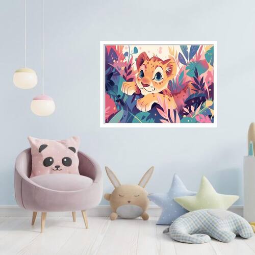 Quadro decorativo baby leão floresta - 50x70cm Cor: moldura branca Informações do produto tire todas as suas dúvidas no descritivo abaixo: decoração para quarto, sala, cozinha, escritório, área gourmet e muito mais. Chega de paredes vazias medidas - cada peça tem 70x50cm . Material do papel - papel fotográfico brilhante de altíssima resolução acabamento - todos os quadros são acompanhados de vidro para proteção da imagem. - moldura em madeira maciça na cor preta ou branca conforme produto escolhido e pendurador. - os quadros são embalados de forma segura com plástico bolha com camada dupla de acordo com o tamanho dos quadros. - de 3 meses. Meu quadro chegou. Como posso fixá-lo Você precisa apenas de um martelo e um prego, pois os quadros já vão acompanhados de penduradores. Esta é a forma mais indicada. Como posso limpar meu quadro A limpeza é feita como um móvel comum da sua casa. Apenas um pano seco ou espanador são suficientes para tal Marca: Não Informado