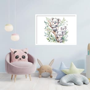 Quadro decorativo babys coalas árvore - 50x70cm Cor: moldura preta Informações do produto tire todas as suas dúvidas no descritivo abaixo: decoração para quarto, sala, cozinha, escritório, área gourmet e muito mais. Chega de paredes vazias medidas - cada peça tem 70x50cm . Material do papel - papel fotográfico brilhante de altíssima resolução acabamento - todos os quadros são acompanhados de vidro para proteção da imagem. - moldura em madeira maciça na cor preta ou branca conforme produto escolhido e pendurador. - os quadros são embalados de forma segura com plástico bolha com camada dupla de acordo com o tamanho dos quadros. - de 3 meses. Meu quadro chegou. Como posso fixá-lo Você precisa apenas de um martelo e um prego, pois os quadros já vão acompanhados de penduradores. Esta é a forma mais indicada. Como posso limpar meu quadro A limpeza é feita como um móvel comum da sua casa. Apenas um pano seco ou espanador são suficientes para tal Ean: 7901039756209