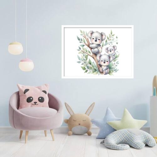 Quadro decorativo babys coalas árvore - 50x70cm Cor: moldura branca Informações do produto tire todas as suas dúvidas no descritivo abaixo: decoração para quarto, sala, cozinha, escritório, área gourmet e muito mais. Chega de paredes vazias medidas - cada peça tem 70x50cm . Material do papel - papel fotográfico brilhante de altíssima resolução acabamento - todos os quadros são acompanhados de vidro para proteção da imagem. - moldura em madeira maciça na cor preta ou branca conforme produto escolhido e pendurador. - os quadros são embalados de forma segura com plástico bolha com camada dupla de acordo com o tamanho dos quadros. - de 3 meses. Meu quadro chegou. Como posso fixá-lo Você precisa apenas de um martelo e um prego, pois os quadros já vão acompanhados de penduradores. Esta é a forma mais indicada. Como posso limpar meu quadro A limpeza é feita como um móvel comum da sua casa. Apenas um pano seco ou espanador são suficientes para tal Ean: 7901039756216