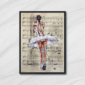 O quadro possui uma linda imagem de bailarina e partitura, que trazem delicadeza e elegância ao ambiente. Além disso, o papel utilizado é de alta qualidade, sendo um papel fotográfico brilhante de altíssima resolução. O acabamento do quadro é impecável, pois ele é acompanhado de uma película de acetato para proteção da imagem.