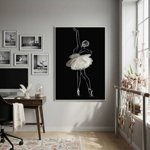Quadro Decorativo Bailarina-70x50cm - Cor: Moldura Branca