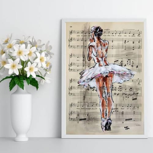Quadro decorativo bailarina e partitura 34x23cm - moldura branca Tamanho: a4 20 x 30 Acabamento: película de acetato Moldura: madeira branca Informações do produto Tire todas as suas dúvidas no descritivo abaixo: Decoração para quarto, sala, cozinha, escritório, área gourmet e muito mais. Chega de paredes vazias Medidas - cada peça tem 34x23cm a4 . Material do papel - papel fotográfico brilhante de altíssima resolução Acabamento - todos os quadros são acompanhados de uma película de acetato para proteção da imagem. - moldura em madeira maciça na cor branca e pendurador móvel que pode ser retirado facilmente caso deseje fixar com fita dupla face. - os quadros são embalados de forma segura com plástico bolha com camada dupla de acordo com o tamanho dos quadros. - de 3 meses Meu quadro chegou. Como posso fixá-lo Você precisa apenas de um martelo e um prego, pois os quadros já vão acompanhados de penduradores. Esta é a forma mais indicada. Caso prefira, você pode utilizar uma fita dupla face neste caso, sugerimos de alta qualidade para evitar que descole e seu quadro caia . Como posso limpar meu quadro A limpeza é feita como um móvel comum da sua casa. Apenas um pano seco ou espanador são suficientes para tal
