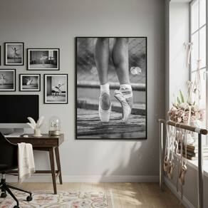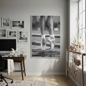 Quadro Decorativo Bailarina Na Ponta Dos Pés-70x50cm - Cor: Moldura Preta
