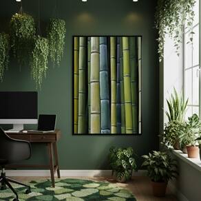Quadro Decorativo Bambu Tons De Verde 70x50cm Mold Branca