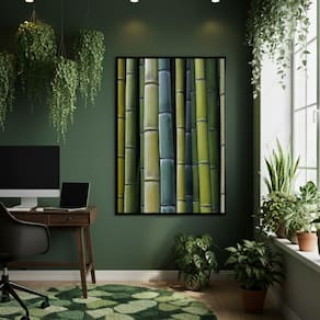 Quadro Decorativo Bambu Tons De Verde 70x50cm Mold Preta
