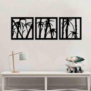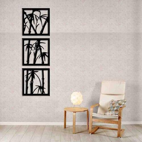Tamanho total: 92cm comprimento x 30cm altura com espaçamento recomendado de 1 cm entre peças, Peças laterais: 30x30 cm peça central: 30x30 cm Espaçamento entre as peças: 1 cm A instalação é bem simples, não será preciso fazer sujeira furando a parede pois utilizamos o método bem prático para instalar, contém fita dupla face 3m no verso do quadro.