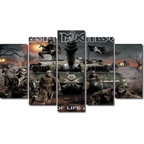 Quadro Decorativo Banda Iron Maiden 5 Peças Impresso em tecido canvas e montado em bastidor de madeira. Com grampos por trás do quadro para melhor acabamento. Imagens em alta resolução para um resultado satisfatório ao cliente. 5 PEÇAS Dimensão 60 cm altura por 100 cm comprimento ,e a espessura 2 cm Cada peça contem 40x20 , 50X20 , 60X20 , 50X20 , 40X20 altura x largura . Sobre o tecido canvas O tecido canvas é um material especial para impressão 100% algodão, com uma preparação especial resinada anti mofo. Apropriada para impressões de obras de artes e impressão de fotos tela, muito usadas em exposições em museus. A preparação do tecido encapsula o pigmento da tinta em uma camada protetora proporcionando resistência, o resultado é cores mais vivas e vibrantes sem perder a textura do tecido. É um material ecologicamente correto. Como fixar o quadro na parede O quadro pode ser fixado com buchas e parafusos, Ou grampos de aço que deixa um furo bem menor na parede que as buchas e parafusos Sobre o envio O quadro Será embalado com uma camada de plastico bolha, E papelão garantindo mais segurança no transporte. Garantimos a qualidade do produto, e a entrega com segurança. Caso o produto chegue com defeito, favor nos comunicar que faremos a troca ou a devolução do pagamento. Ean: 7908245606274 Marca: Não Informado