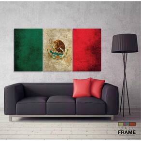 Quadro Decorativo Bandeira México Vintage Mosaico 120x60 3 p
