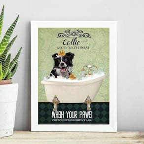 Quadro decorativo banheiro border collie 24x18cm Moldura: madeira branca Informações do produto tire todas as suas dúvidas no descritivo abaixo: decoração para quarto, sala, cozinha, escritório, área gourmet e muito mais. Chega de paredes vazias medidas - cada peça tem 24x18cm a5 . Material do papel - papel fotográfico brilhante de altíssima resolução acabamento - todos os quadros são acompanhados de uma película de acetato para proteção da imagem. - os quadros são embalados de forma segura com plástico bolha com camada dupla de acordo com o tamanho dos quadros. Garantia - garantia de 3 meses. Meu quadro chegou. Como posso fixá-lo Você precisa apenas de um martelo e um prego, pois os quadros já vão acompanhados de penduradores. Esta é a forma mais indicada. Caso prefira, você pode utilizar uma fita dupla face neste caso, sugerimos de alta qualidade para evitar que descole e seu quadro caia . Como posso limpar meu quadro A limpeza é feita como um móvel comum da sua casa. Apenas um pano seco ou espanador são suficientes para tal