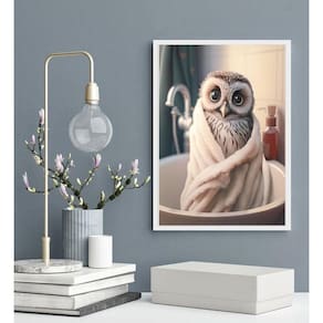 Quadro decorativo para banheiro corujinha 45x34cm - com vidro Moldura: madeira branca Informações do produto tire todas as suas dúvidas no descritivo abaixo: decoração para quarto, sala, cozinha, escritório, área gourmet e muito mais. Chega de paredes vazias medidas - cada peça tem 45x34cm a3 . Material do papel - papel fotográfico brilhante de altíssima resolução acabamento - todos os quadros são acompanhados de vidro para proteção da imagem. - moldura em madeira maciça na cor preta ou branca conforme produto escolhido e pendurador . - os quadros são embalados de forma segura com plástico bolha com camada dupla de acordo com o tamanho dos quadros. Garantia - garantia de 3 meses. Meu quadro chegou. Como posso fixá-lo Você precisa apenas de um martelo e um prego, pois os quadros já vão acompanhados de penduradores. Esta é a forma mais indicada. Como posso limpar meu quadro A limpeza é feita como um móvel comum da sua casa. Apenas um pano seco ou espanador são suficientes para tal Ean: 7892573124398