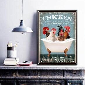 Quadro decorativo banheiro galinhas 24x18cm - com vidro Moldura: madeira branca Informações do produto tire todas as suas dúvidas no descritivo abaixo: decoração para quarto, sala, cozinha, escritório, área gourmet e muito mais. Chega de paredes vazias medidas - cada peça tem 24x18cm a5 . Material do papel - papel fotográfico brilhante de altíssima resolução acabamento - todos os quadros são acompanhados de vidro para proteção da imagem. - moldura em madeira maciça na cor preta ou branca conforme produto escolhido e pendurador . - os quadros são embalados de forma segura com plástico bolha com camada dupla de acordo com o tamanho dos quadros. Garantia - garantia de 3 meses. Meu quadro chegou. Como posso fixá-lo Você precisa apenas de um martelo e um prego, pois os quadros já vão acompanhados de penduradores. Esta é a forma mais indicada. Como posso limpar meu quadro A limpeza é feita como um móvel comum da sua casa. Apenas um pano seco ou espanador são suficientes para tal
