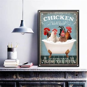 Quadro decorativo banheiro galinhas 33x24cm - com vidro Moldura: madeira branca Informações do produto tire todas as suas dúvidas no descritivo abaixo: decoração para quarto, sala, cozinha, escritório, área gourmet e muito mais. Chega de paredes vazias medidas - cada peça tem 33x24cm a4 . Material do papel - papel fotográfico brilhante de altíssima resolução acabamento - todos os quadros são acompanhados de vidro para proteção da imagem. - moldura em madeira maciça na cor preta ou branca conforme produto escolhido e pendurador . - os quadros são embalados de forma segura com plástico bolha com camada dupla de acordo com o tamanho dos quadros. Garantia - garantia de 3 meses. Meu quadro chegou. Como posso fixá-lo Você precisa apenas de um martelo e um prego, pois os quadros já vão acompanhados de penduradores. Esta é a forma mais indicada. Como posso limpar meu quadro A limpeza é feita como um móvel comum da sua casa. Apenas um pano seco ou espanador são suficientes para tal
