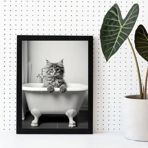 Quadro decorativo banheiro- gato banheira 45x34cm Moldura: madeira branca Informações do produto tire todas as suas dúvidas no descritivo abaixo: decoração para quarto, sala, cozinha, escritório, área gourmet e muito mais. Chega de paredes vazias. Medidas - cada peça tem 45x34cm a3 . Material do papel - papel fotográfico brilhante de altíssima resolução acabamento - todos os quadros são acompanhados de uma película de acetato para proteção da imagem. - os quadros são embalados de forma segura com plástico bolha com camada dupla de acordo com o tamanho dos quadros. Garantia - garantia de 3 meses. Meu quadro chegou. Como posso fixá-lo Você precisa apenas de um martelo e um prego, pois os quadros já vão acompanhados de penduradores. Esta é a forma mais indicada. Caso prefira, você pode utilizar uma fita dupla face neste caso, sugerimos de alta qualidade para evitar que descole e seu quadro caia . Como posso limpar meu quadro A limpeza é feita como um móvel comum da sua casa. Apenas um pano seco ou espanador são suficientes para tal Ean: 7892576606587