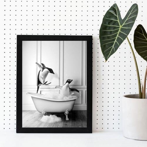 Quadro decorativo banheiro- pinguins banheira 24x18cm - com vidro Moldura: madeira preta Informações do produto tire todas as suas dúvidas no descritivo abaixo: decoração para quarto, sala, cozinha, escritório, área gourmet e muito mais. Chega de paredes vazias medidas - cada peça tem 24x18cm a5 . Material do papel - papel fotográfico brilhante de altíssima resolução acabamento - todos os quadros são acompanhados de vidro para proteção da imagem. - moldura em madeira maciça na cor preta ou branca conforme produto escolhido e pendurador . - os quadros são embalados de forma segura com plástico bolha com camada dupla de acordo com o tamanho dos quadros. Garantia - garantia de 3 meses. Meu quadro chegou. Como posso fixá-lo Você precisa apenas de um martelo e um prego, pois os quadros já vão acompanhados de penduradores. Esta é a forma mais indicada. Como posso limpar meu quadro A limpeza é feita como um móvel comum da sua casa. Apenas um pano seco ou espanador são suficientes para tal Ean: 7895725241578