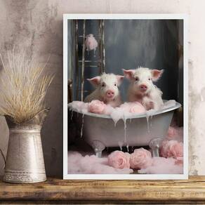 Quadro decorativo para banheiro - porquinhos 33x24cm - com vidro Cor: moldura preta Informações do produto tire todas as suas dúvidas no descritivo abaixo: decoração para quarto, sala, cozinha, escritório, área gourmet e muito mais. Chega de paredes vazias medidas - cada peça tem 33x24cm a4 . Material do papel - papel fotográfico brilhante de altíssima resolução acabamento - todos os quadros são acompanhados de vidro para proteção da imagem. - moldura em madeira maciça na cor preta ou branca conforme produto escolhido e pendurador . - os quadros são embalados de forma segura com plástico bolha com camada dupla de acordo com o tamanho dos quadros. Garantia - garantia de 3 meses. Meu quadro chegou. Como posso fixá-lo Você precisa apenas de um martelo e um prego, pois os quadros já vão acompanhados de penduradores. Esta é a forma mais indicada. Como posso limpar meu quadro A limpeza é feita como um móvel comum da sua casa. Apenas um pano seco ou espanador são suficientes para tal