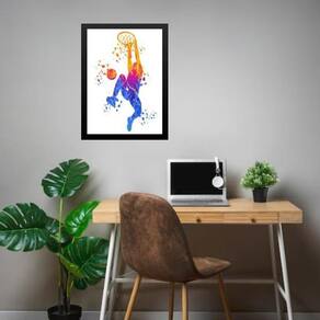 Quadro decorativo basquete aquarela 45x34cm Cor: moldura preta Informações do produto tire todas as suas dúvidas no descritivo abaixo: decoração para quarto, sala, cozinha, escritório, área gourmet e muito mais. Chega de paredes vazias. Medidas - cada peça tem 45x34cm a3 . Material do papel - papel fotográfico brilhante de altíssima resolução acabamento - todos os quadros são acompanhados de uma película de acetato para proteção da imagem. - os quadros são embalados de forma segura com plástico bolha com camada dupla de acordo com o tamanho dos quadros. Garantia - garantia de 3 meses. Meu quadro chegou. Como posso fixá-lo Você precisa apenas de um martelo e um prego, pois os quadros já vão acompanhados de penduradores. Esta é a forma mais indicada. Caso prefira, você pode utilizar uma fita dupla face neste caso, sugerimos de alta qualidade para evitar que descole e seu quadro caia . Como posso limpar meu quadro A limpeza é feita como um móvel comum da sua casa. Apenas um pano seco ou espanador são suficientes para tal