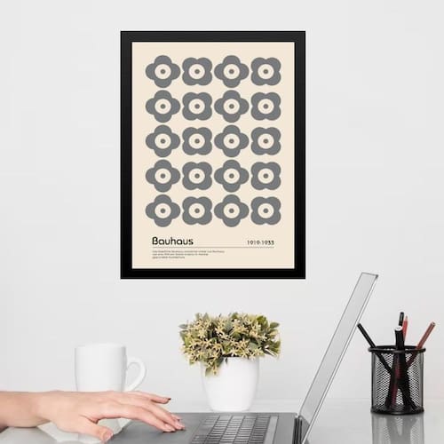 Quadro decorativo bauhaus cinza floral 33x24cm - com vidro Cor: moldura branca Informações do produto tire todas as suas dúvidas no descritivo abaixo: decoração para quarto, sala, cozinha, escritório, área gourmet e muito mais. Chega de paredes vazias medidas - cada peça tem 33x24cm a4 . Material do papel - papel fotográfico brilhante de altíssima resolução acabamento - todos os quadros são acompanhados de vidro para proteção da imagem. - moldura em madeira maciça na cor preta ou branca conforme produto escolhido e pendurador . - os quadros são embalados de forma segura com plástico bolha com camada dupla de acordo com o tamanho dos quadros. - de 3 meses. Meu quadro chegou. Como posso fixá-lo Você precisa apenas de um martelo e um prego, pois os quadros já vão acompanhados de penduradores. Esta é a forma mais indicada. Como posso limpar meu quadro A limpeza é feita como um móvel comum da sua casa. Apenas um pano seco ou espanador são suficientes para tal