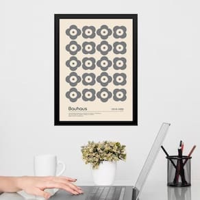 Quadro decorativo bauhaus cinza floral 45x34cm - com vidro Cor: moldura branca Informações do produto tire todas as suas dúvidas no descritivo abaixo: decoração para quarto, sala, cozinha, escritório, área gourmet e muito mais. Chega de paredes vazias medidas - cada peça tem 45x34cm a3 . Material do papel - papel fotográfico brilhante de altíssima resolução acabamento - todos os quadros são acompanhados de vidro para proteção da imagem. - moldura em madeira maciça na cor preta ou branca conforme produto escolhido e pendurador . - os quadros são embalados de forma segura com plástico bolha com camada dupla de acordo com o tamanho dos quadros. - de 3 meses. Meu quadro chegou. Como posso fixá-lo Você precisa apenas de um martelo e um prego, pois os quadros já vão acompanhados de penduradores. Esta é a forma mais indicada. Como posso limpar meu quadro A limpeza é feita como um móvel comum da sua casa. Apenas um pano seco ou espanador são suficientes para tal