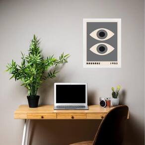 Quadro decorativo bauhaus olhos cinza 45x34cm - com vidro Cor: moldura branca Informações do produto tire todas as suas dúvidas no descritivo abaixo: decoração para quarto, sala, cozinha, escritório, área gourmet e muito mais. Chega de paredes vazias medidas - cada peça tem 45x34cm a3 . Material do papel - papel fotográfico brilhante de altíssima resolução acabamento - todos os quadros são acompanhados de vidro para proteção da imagem. - moldura em madeira maciça na cor preta ou branca conforme produto escolhido e pendurador . - os quadros são embalados de forma segura com plástico bolha com camada dupla de acordo com o tamanho dos quadros. - de 3 meses. Meu quadro chegou. Como posso fixá-lo Você precisa apenas de um martelo e um prego, pois os quadros já vão acompanhados de penduradores. Esta é a forma mais indicada. Como posso limpar meu quadro A limpeza é feita como um móvel comum da sua casa. Apenas um pano seco ou espanador são suficientes para tal