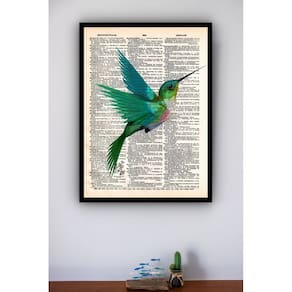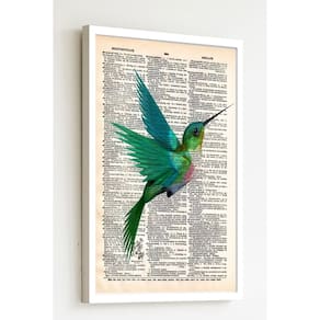 Quadro Decorativo Beija Flor Verde Vintage - 70x50cm - Cor: Moldura Branca