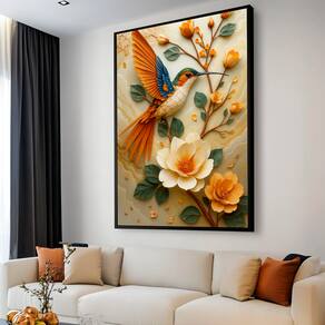 Quadro Decorativo Beija-Flor Moldura Dourada e Vidro - 118x78cm -