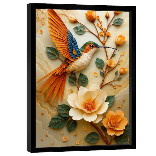 Quadro Decorativo Beija-Flor Moldura Preta - 84x54cm -