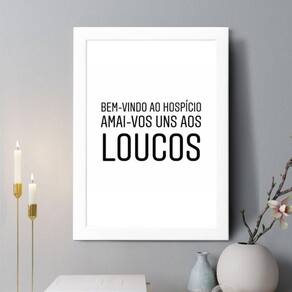 Quadro decorativo bem-vindo ao hospício 33x24cm - com vidro Cor: moldura preta Informações do produto tire todas as suas dúvidas no descritivo abaixo: decoração para quarto, sala, cozinha, escritório, área gourmet e muito mais. Chega de paredes vazias medidas - cada peça tem 33x24cm a4 . Material do papel - papel fotográfico brilhante de altíssima resolução acabamento - todos os quadros são acompanhados de vidro para proteção da imagem. - moldura em madeira maciça na cor preta ou branca conforme produto escolhido e pendurador . - os quadros são embalados de forma segura com plástico bolha com camada dupla de acordo com o tamanho dos quadros. Garantia - garantia de 3 meses. Meu quadro chegou. Como posso fixá-lo Você precisa apenas de um martelo e um prego, pois os quadros já vão acompanhados de penduradores. Esta é a forma mais indicada. Como posso limpar meu quadro A limpeza é feita como um móvel comum da sua casa. Apenas um pano seco ou espanador são suficientes para tal