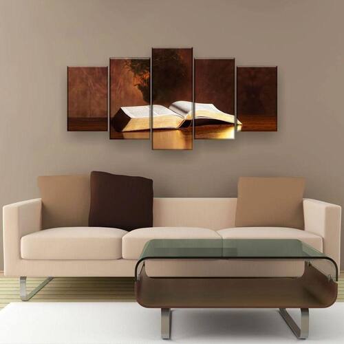 Quadro Decorativo Bíblia Jesus Cristo 5pc 129x61 Sala Quarto