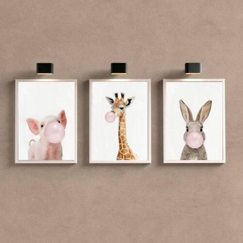 Itens inclusos 03 Quadros Decorativos Bichinhos Chicletes Rosa 24 X 18 Cm