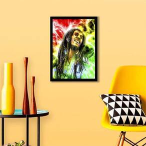 Quadro Decorativo Bob Marley Colorido - Tamanho: A4 (20 x 30) / Acabamento: Película de acetato / Moldura: Madeira preta