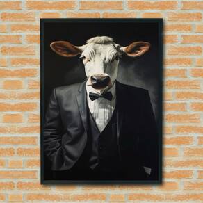 Quadro Decorativo Boi Elegante - 70x50cm - Cor: Moldura Preta