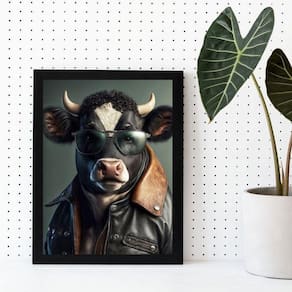 Quadro decorativo boi humano fashion 24x18cm Moldura: madeira preta Informações do produto tire todas as suas dúvidas no descritivo abaixo: decoração para quarto, sala, cozinha, escritório, área gourmet e muito mais. Chega de paredes vazias medidas - cada peça tem 24x18cm a5 . Material do papel - papel fotográfico brilhante de altíssima resolução acabamento - todos os quadros são acompanhados de uma película de acetato para proteção da imagem. - os quadros são embalados de forma segura com plástico bolha com camada dupla de acordo com o tamanho dos quadros. Garantia - garantia de 3 meses. Meu quadro chegou. Como posso fixá-lo Você precisa apenas de um martelo e um prego, pois os quadros já vão acompanhados de penduradores. Esta é a forma mais indicada. Caso prefira, você pode utilizar uma fita dupla face neste caso, sugerimos de alta qualidade para evitar que descole e seu quadro caia . Como posso limpar meu quadro A limpeza é feita como um móvel comum da sua casa. Apenas um pano seco ou espanador são suficientes para tal