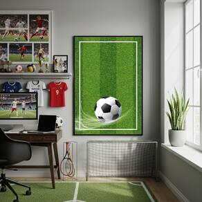 Quadro Decorativo Bola No Campo-70x50cm - Cor: Moldura Branca