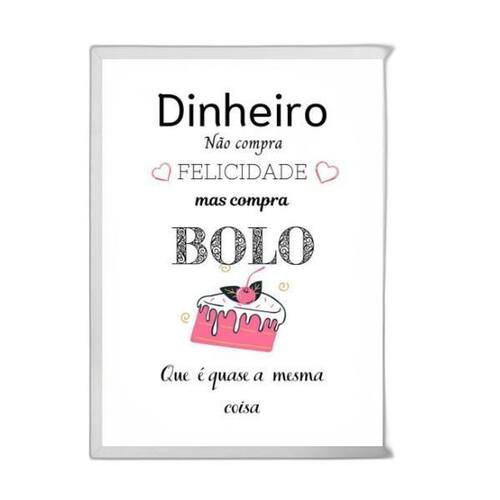 Quadro decorativo bolo felicidade 45x34cm Moldura: madeira branca Informações do produto tire todas as suas dúvidas no descritivo abaixo: decoração para quarto, sala, cozinha, escritório, área gourmet e muito mais. Chega de paredes vazias. Medidas - cada peça tem 45x34cm a3 . Material do papel - papel fotográfico brilhante de altíssima resolução acabamento - todos os quadros são acompanhados de uma película de acetato para proteção da imagem. - os quadros são embalados de forma segura com plástico bolha com camada dupla de acordo com o tamanho dos quadros. Garantia - garantia de 3 meses. Meu quadro chegou. Como posso fixá-lo Você precisa apenas de um martelo e um prego, pois os quadros já vão acompanhados de penduradores. Esta é a forma mais indicada. Caso prefira, você pode utilizar uma fita dupla face neste caso, sugerimos de alta qualidade para evitar que descole e seu quadro caia . Como posso limpar meu quadro A limpeza é feita como um móvel comum da sua casa. Apenas um pano seco ou espanador são suficientes para tal Ean: 7890300218334
