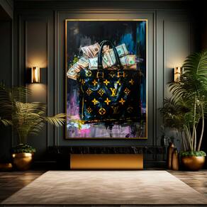 Quadro Decorativo Bolsa de Dinheiro Moldura Preta e Vidro - 118x78cm -