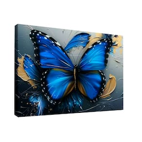 Quadro Decorativo Borboleta Azul Moldura Branca - 118x78cm -